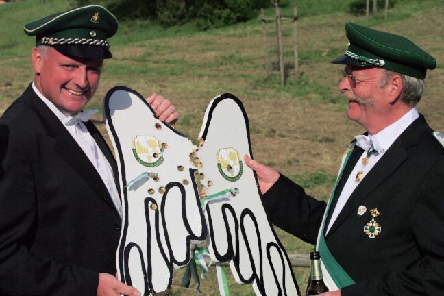 Den vorletzten Schuss auf den Vogel feuerte Michael Hammerschmidt (links) aus Weiberg ab.